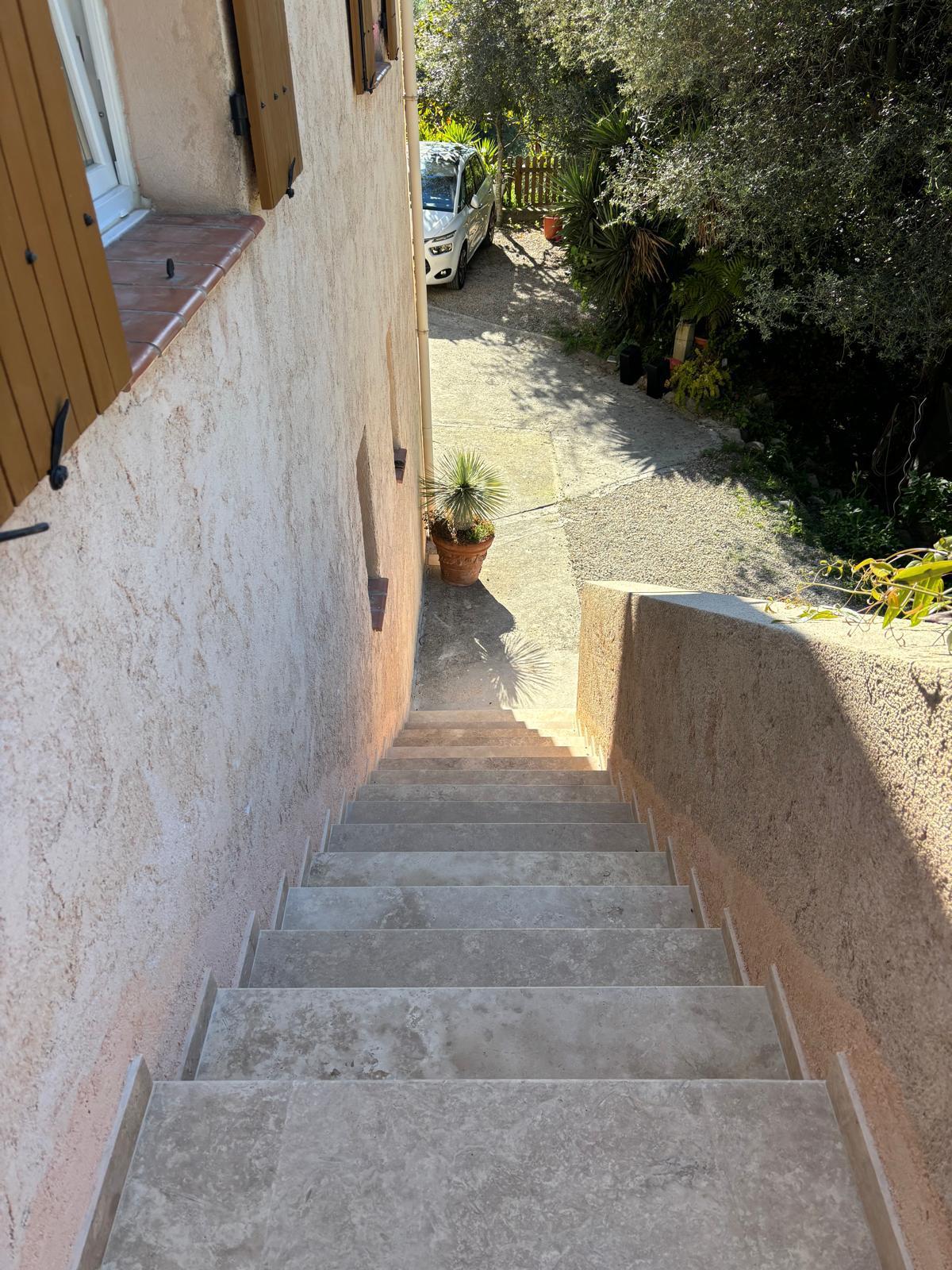 Réalisation de marches et contremarches en marbre avec finitions soignées, alliant élégance, précision et durabilité.